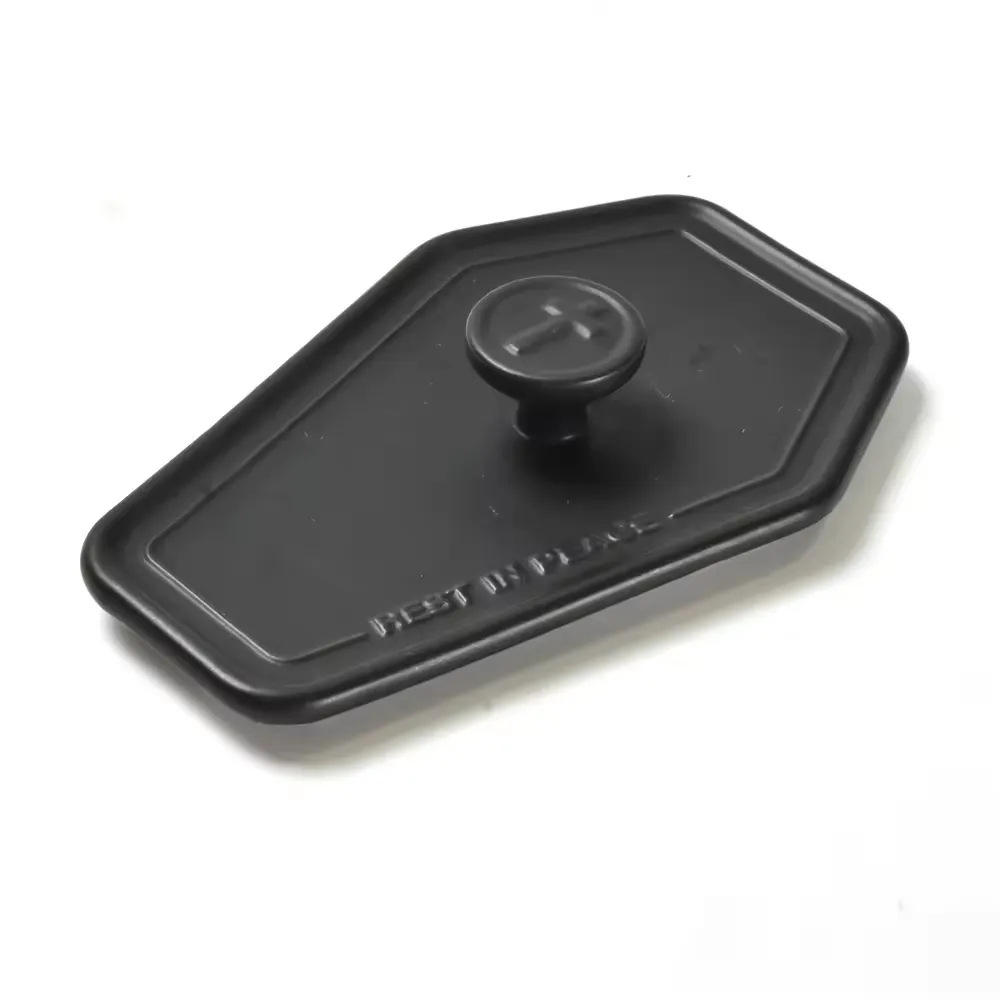• Unique Coffin Design: This ceramic bread pan wholesale features a highly recognizable “coffin” geometric shape, with the words “REST IN PEACE” and a cross decoration printed on the lid. This differentiated design quickly attracts consumers’ attention, making it a top-selling item for Halloween or Gothic-themed markets.