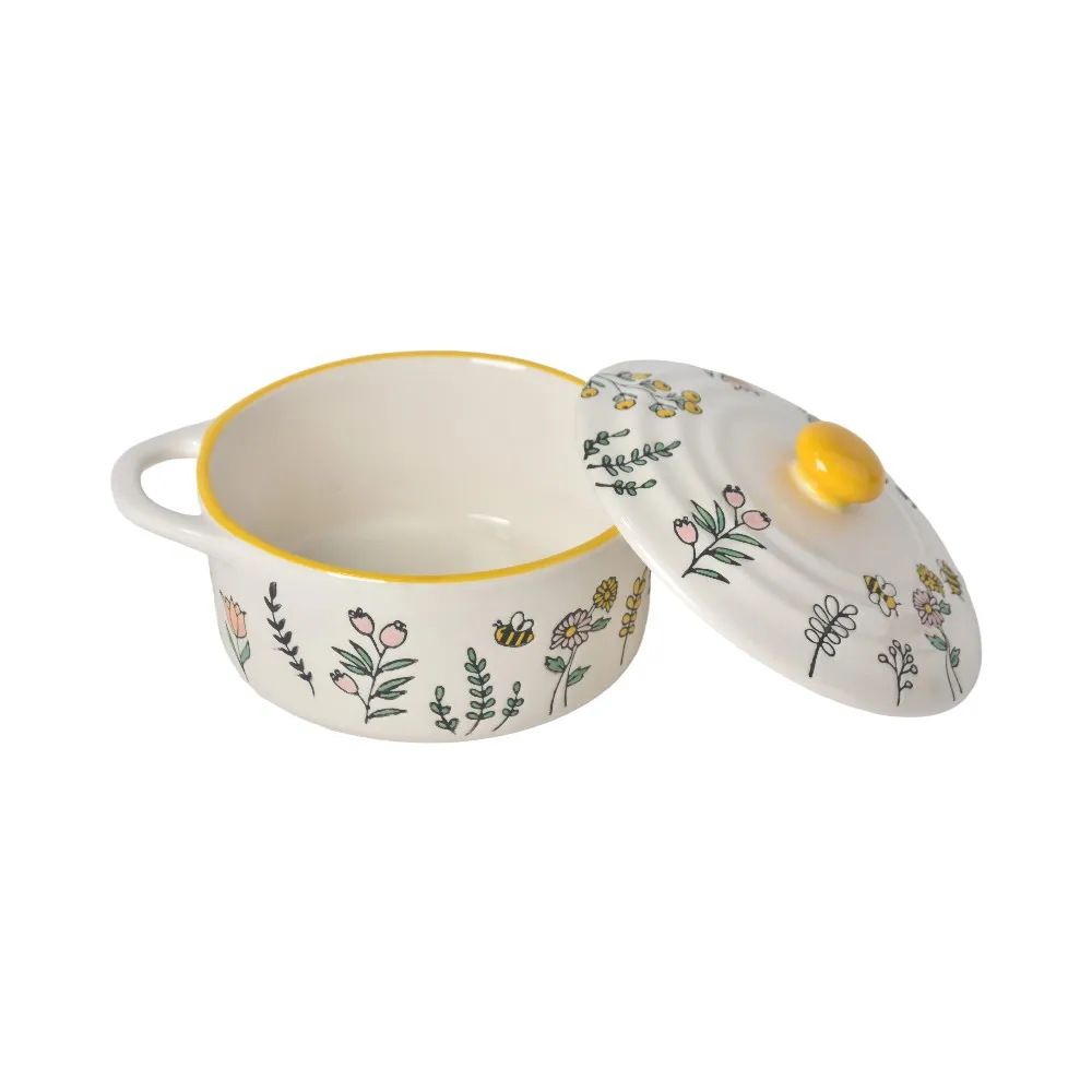Welcome to purchase these bulk casserole dishes, hand-painted with bees, designed for professional kitchens, restaurants, and hotel dining operations. Made from durable, heat-resistant ceramic with a matching lid, it delivers even heat distribution and excellent heat retention for slow cooking and serving. Available for wholesale supply with custom options, including size, decoration, logo, and packaging, ideal for bulk buyers, foodservice brands, and hospitality projects.