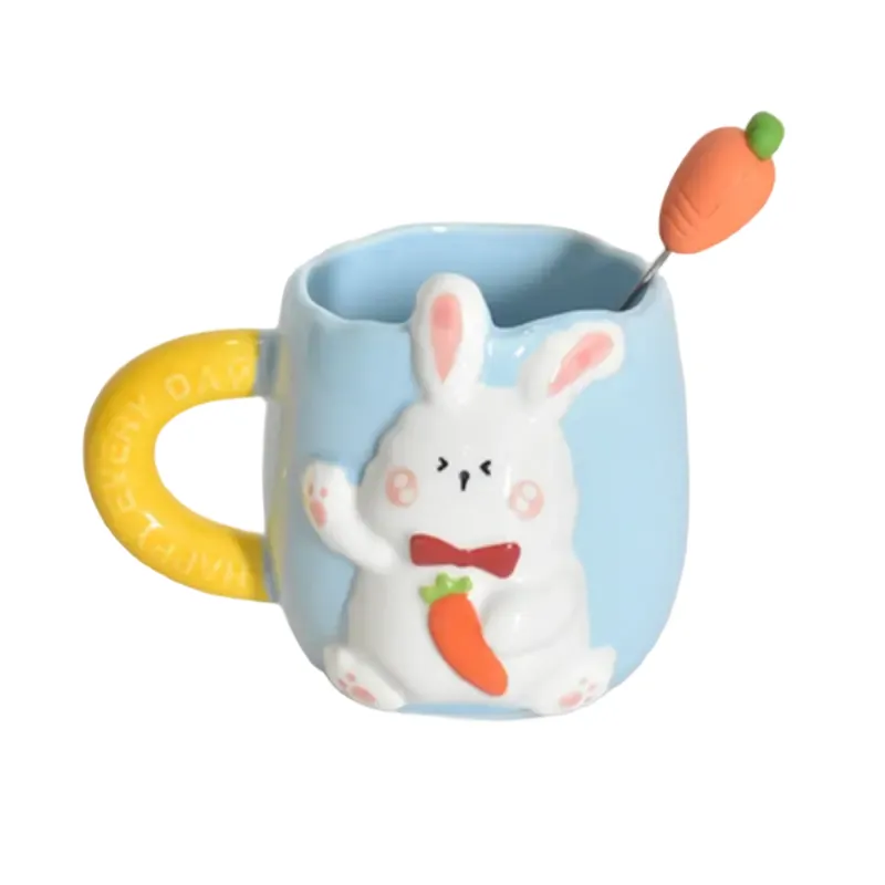 Welcome to purchase these bulk ceramic mugs with spoons, is hand-painted with a relief rabbit, made from high-quality, durable ceramic. Ideal for coffee, milk, and gift markets. We support bulk supply and full OEM customization, including logo, color, and packaging, perfect for brands, wholesalers, and promotional buyers.