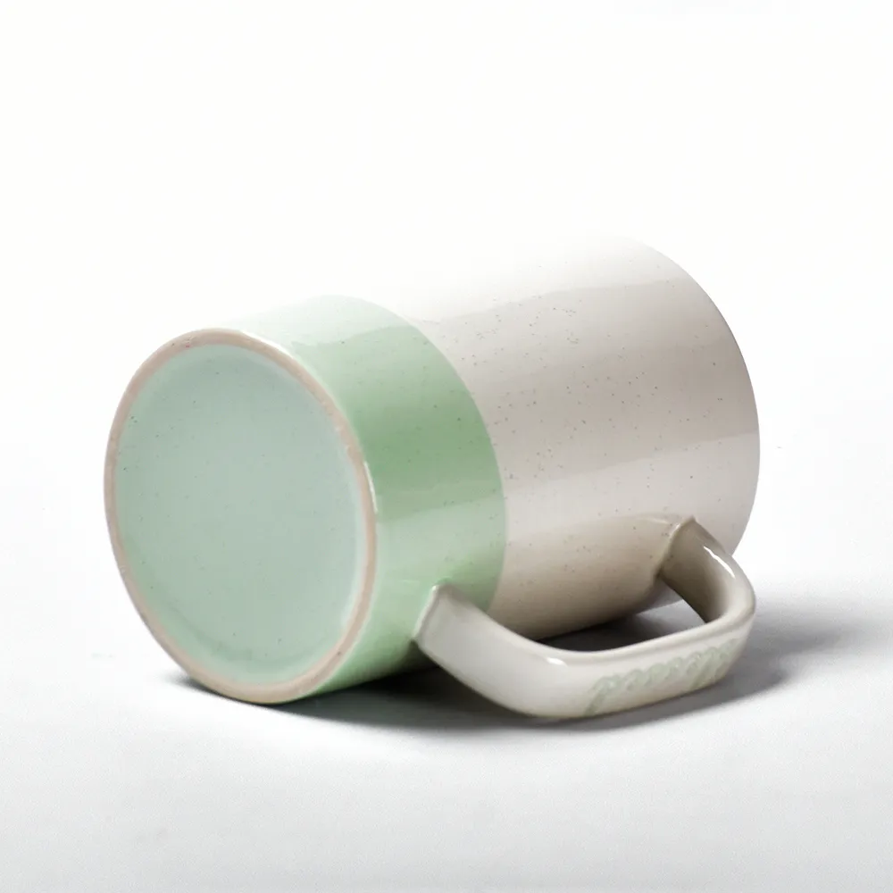 - High-Quality Ceramic Material: Made from premium food-grade ceramic, these two-tone coffee mugs in bulk offer excellent durability and heat resistance. The thickened mug wall ensures long-term use without cracking, making them ideal for wholesale distribution, cafés, and promotional projects.